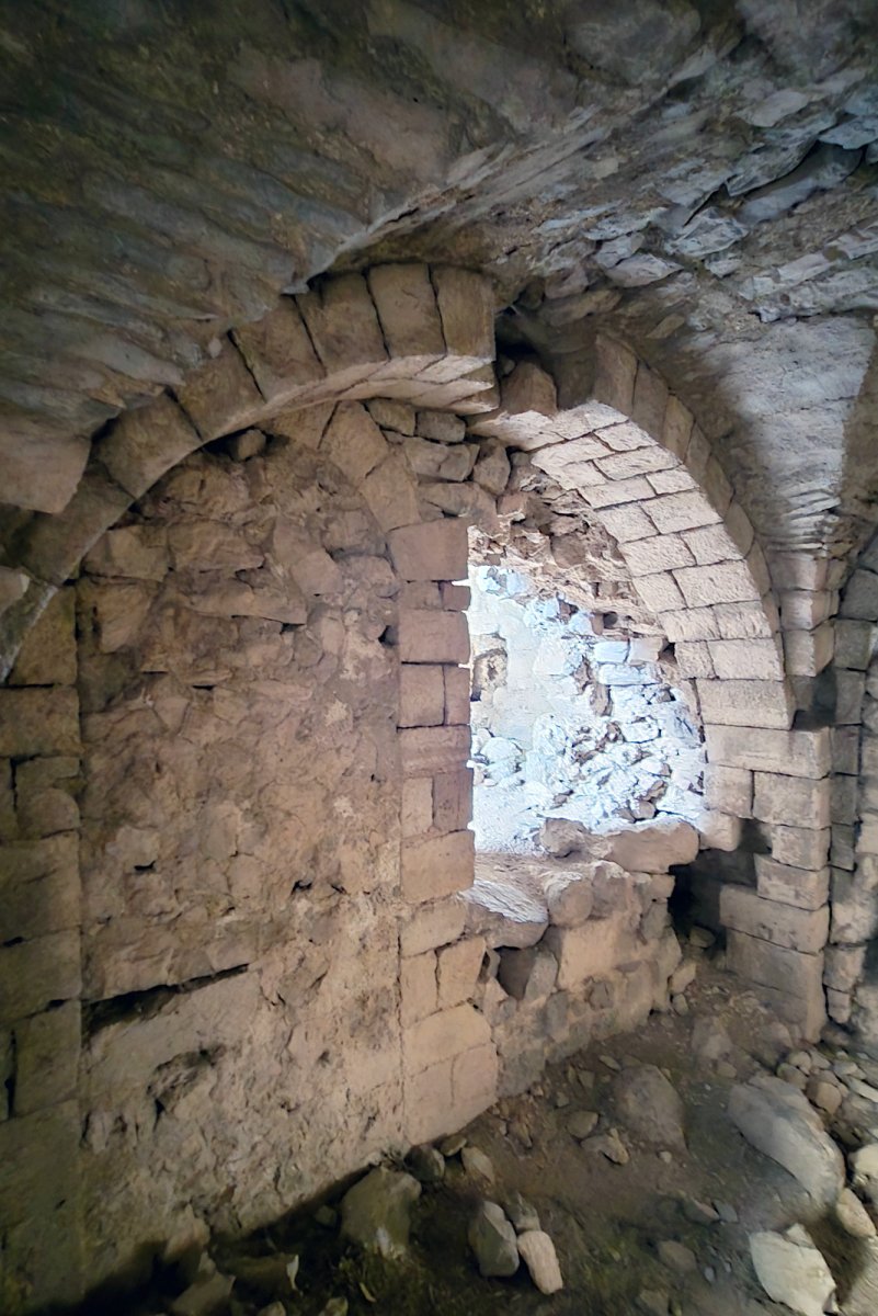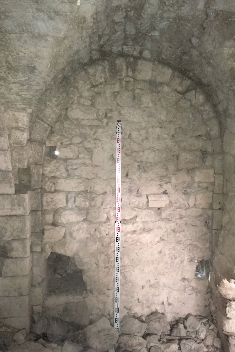 Le mur est de la Marquise porte les vestiges de deux arches : il est probable qu’avant de devenir une cellule, cette pièce ait été un espace de stockage ouvert sur une cour extérieure. Cette cour sera lui-même convertie en cave, celle du tinal, au moment de la transformation du château en caserne au XVIIe siècle.
